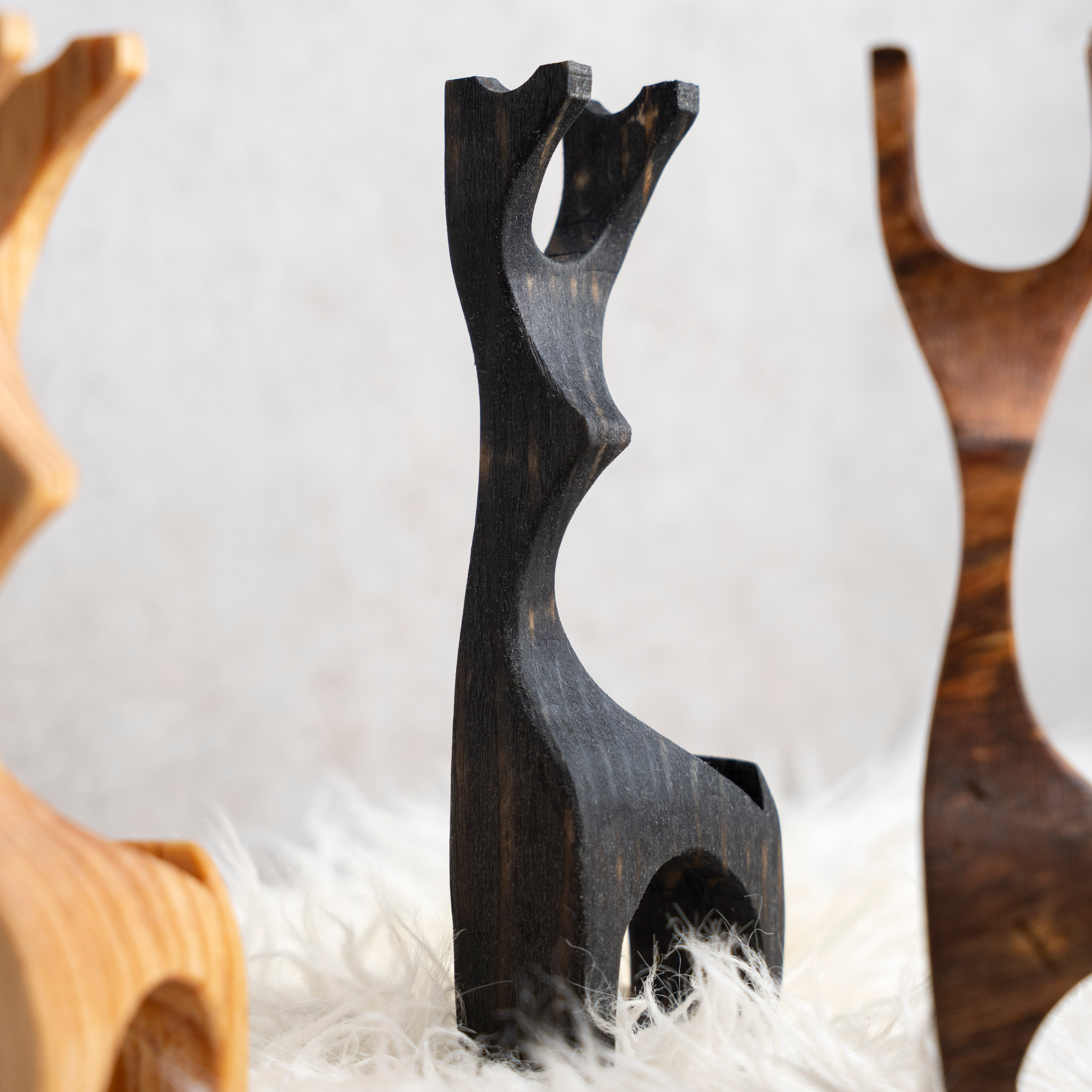 Renos decorativos de madera que transforman cualquier espacio en un ambiente festivo y elegante. Cada pieza es una expresión artesanal del arte en madera, con detalles cuidadosamente tallados que capturan la gracia natural de estos majestuosos animales. Ideales para decorar tu hogar, oficina o tienda, estas estatuas aportan calidez y sofisticación a la decoración navideña o permanente. Su construcción en madera noble garantiza durabilidad y un acabado refinado que complementa cualquier estilo de interiorismo.